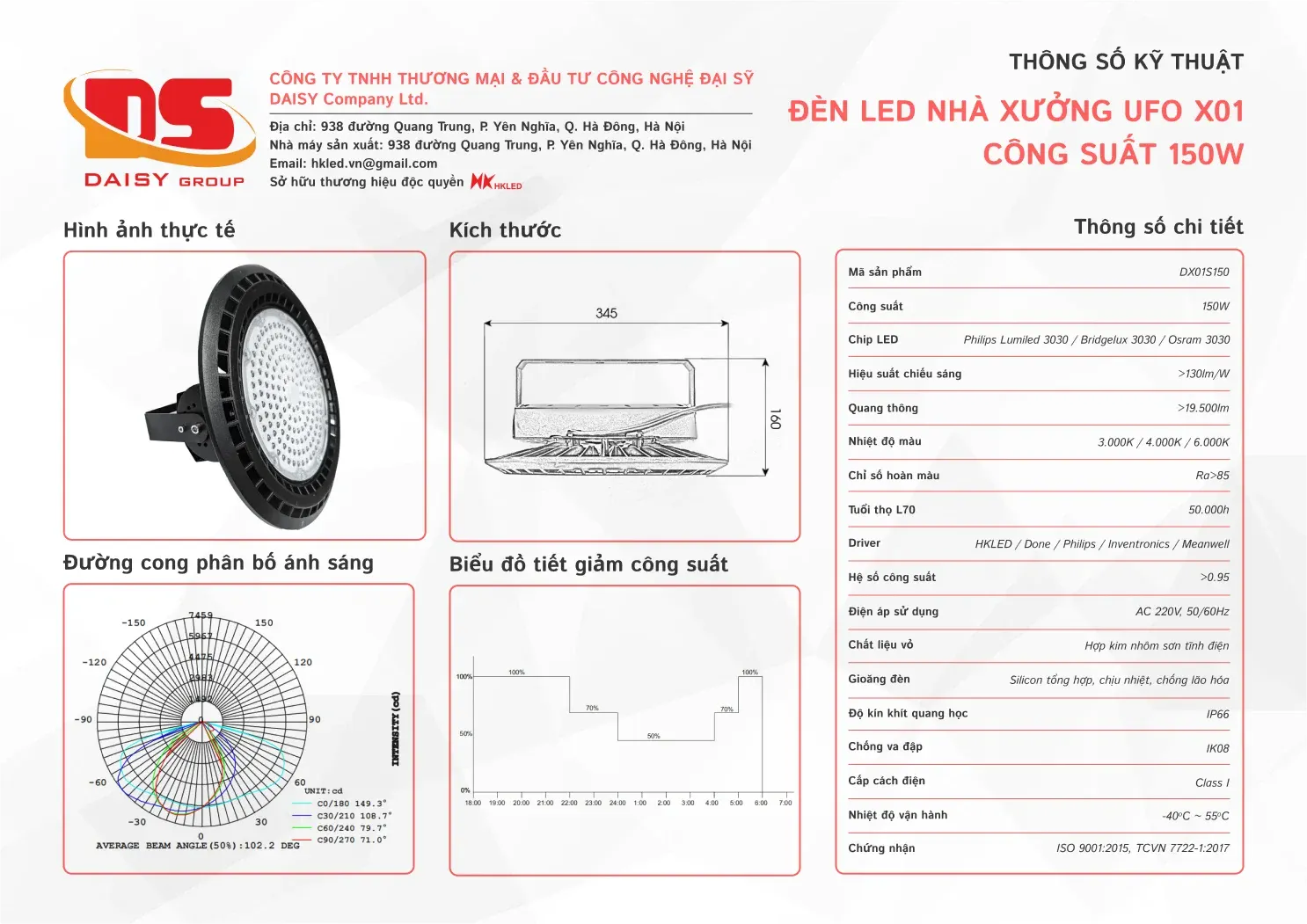 Đèn nhà xưởng UFO X01 Nguồn hộp – Công suất 150W