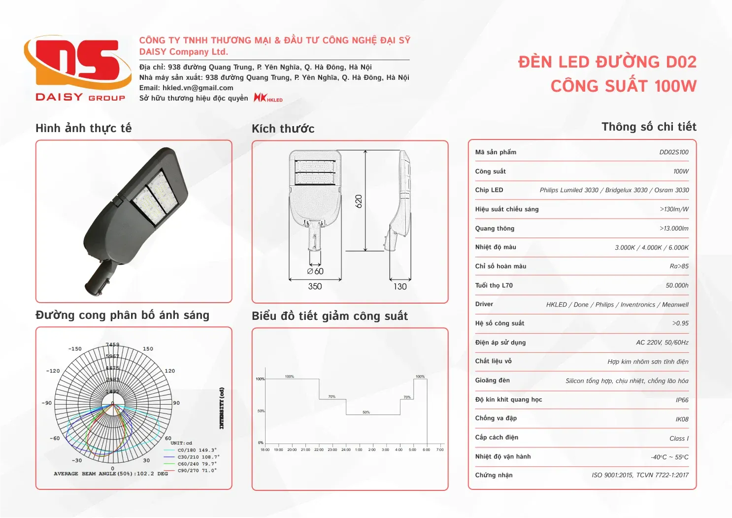 • Hiệu suất chiếu sáng: 130lm/W