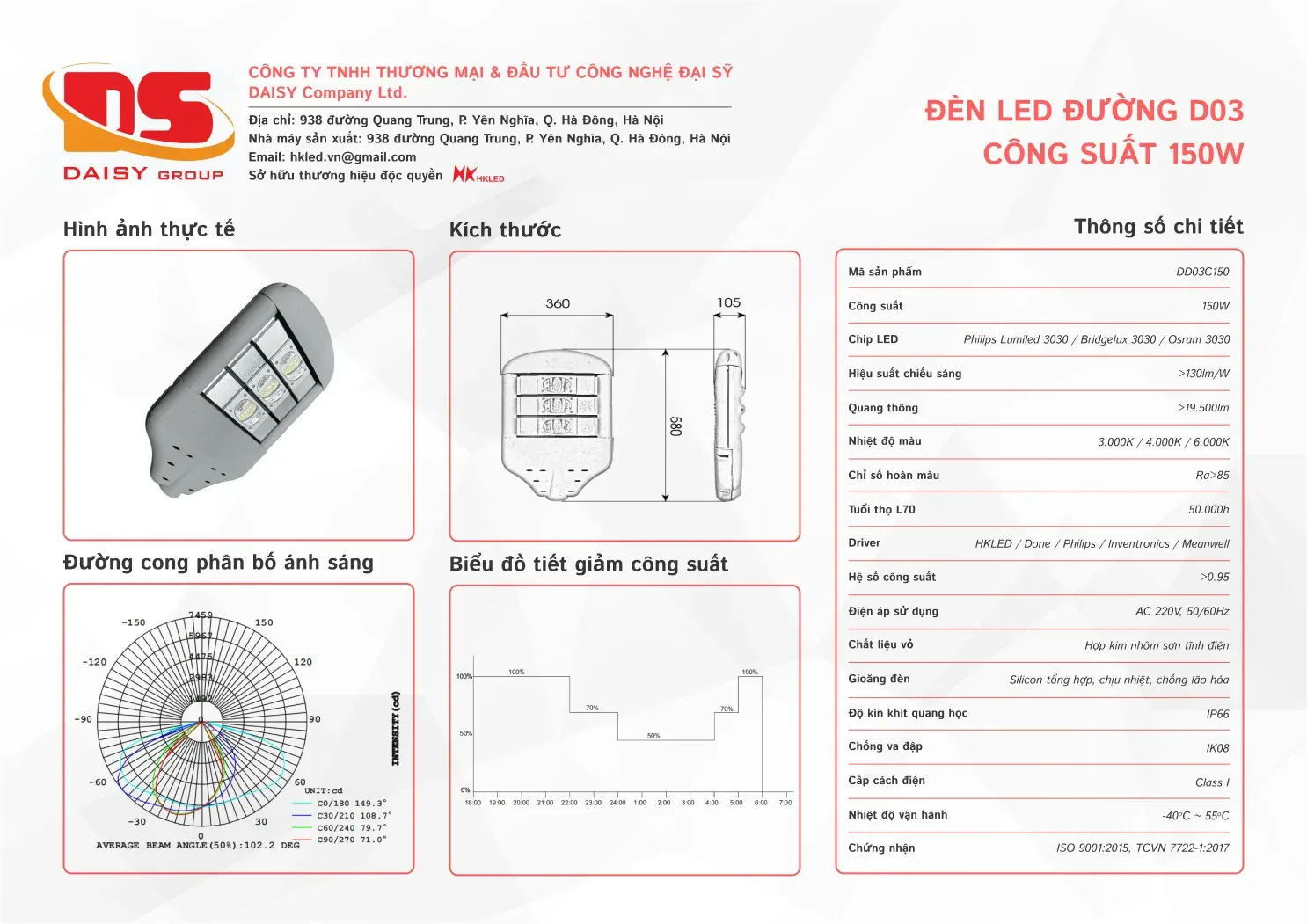 • Hiệu suất chiếu sáng: 130lm/W
