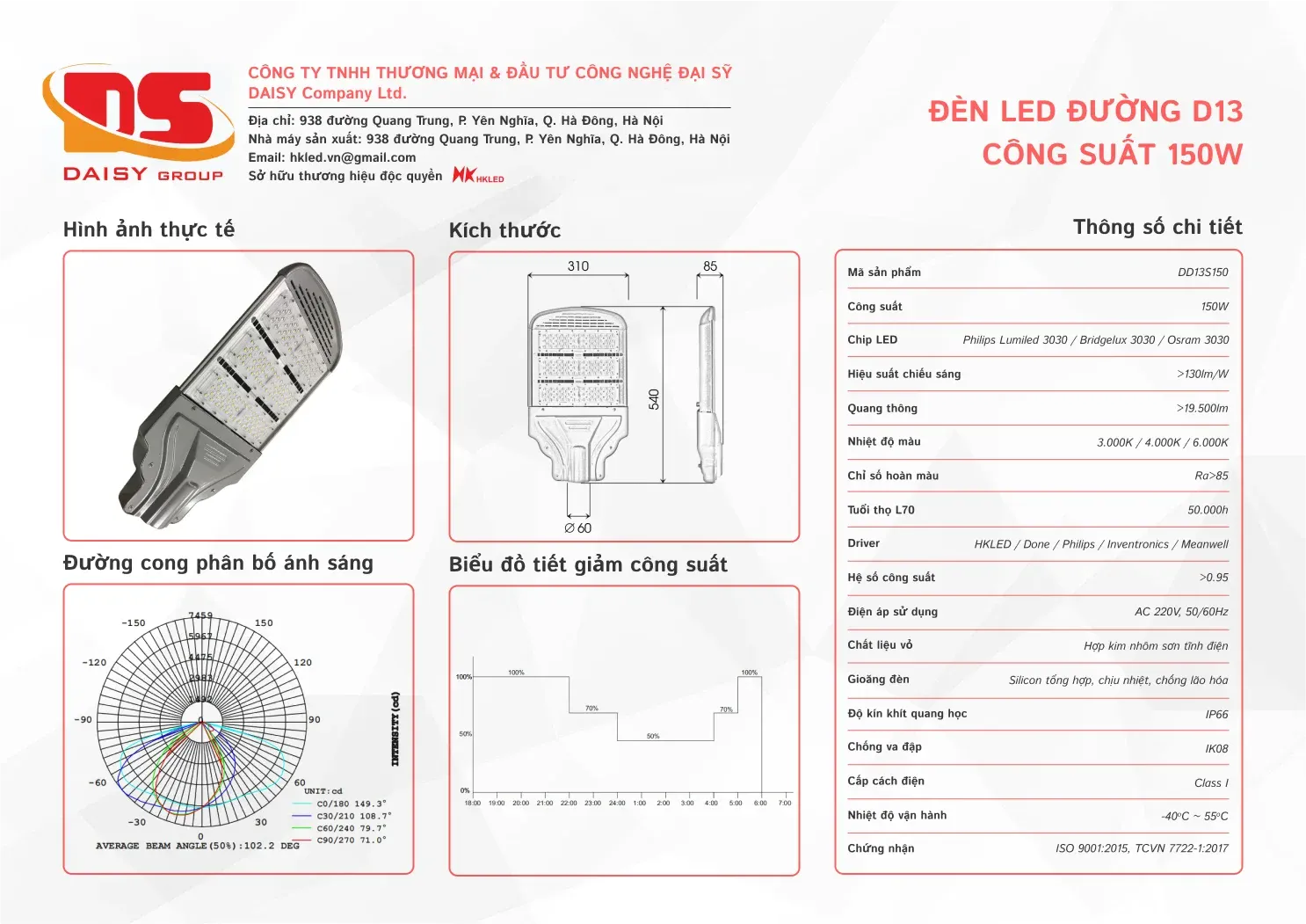 • Hiệu suất chiếu sáng: 130lm/W