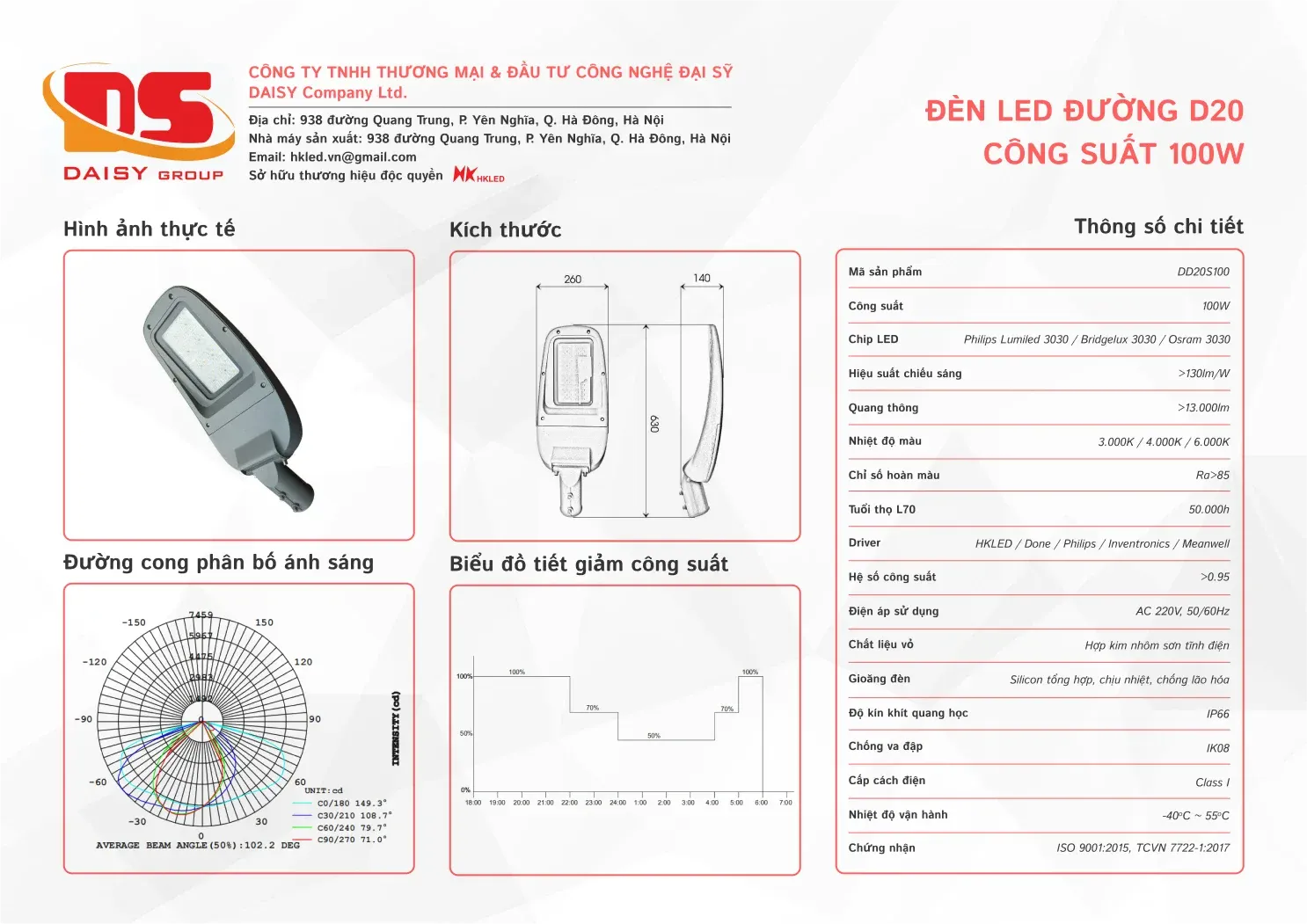 • Hiệu suất chiếu sáng: 130lm/W
