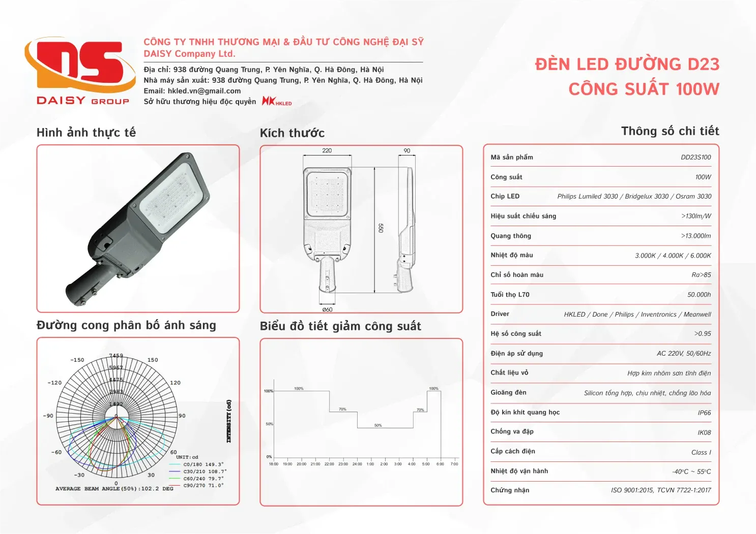 • Hiệu suất chiếu sáng: 130lm/W