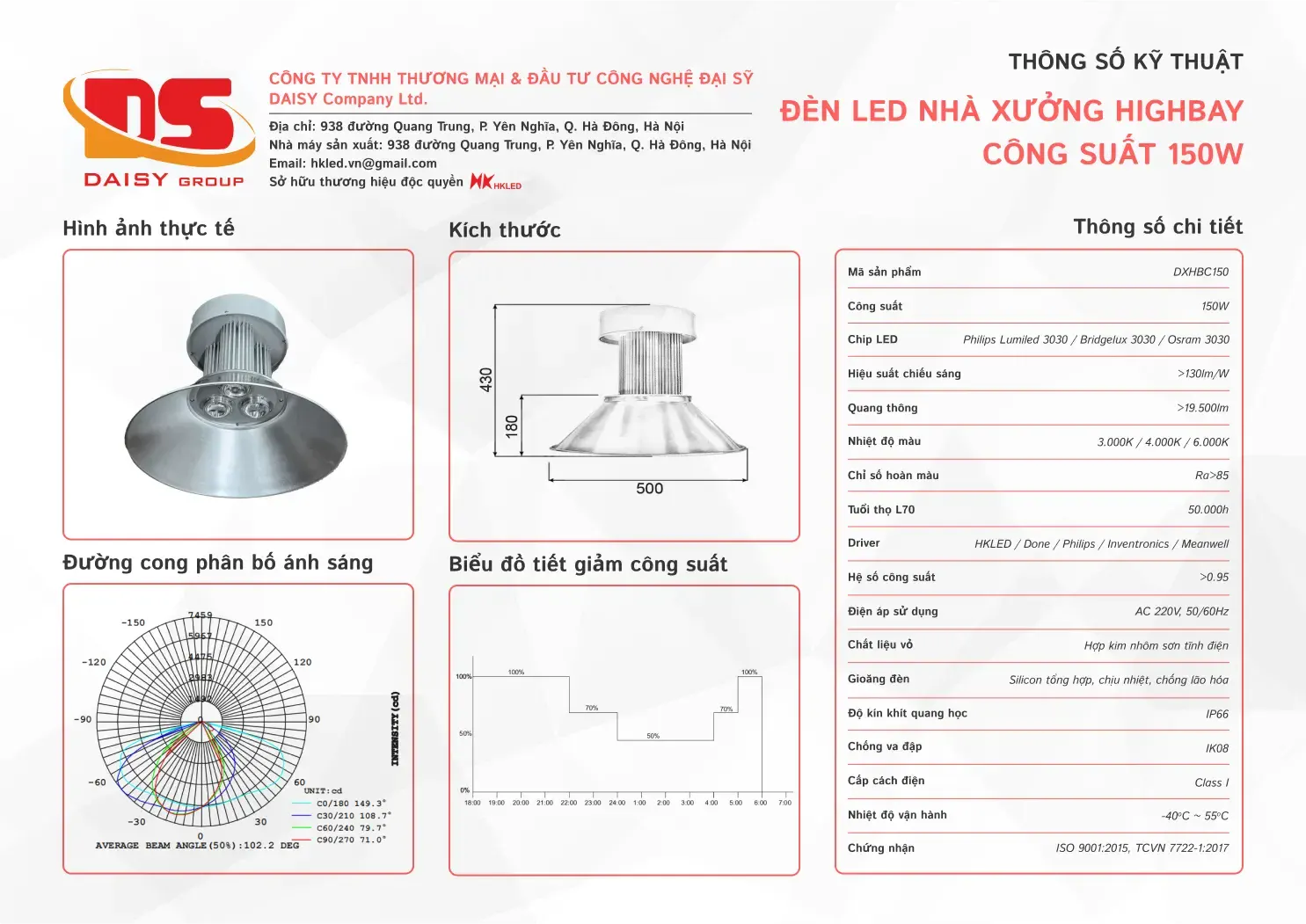 Đèn nhà xưởng highbay chip LED COB – Công suất 150W