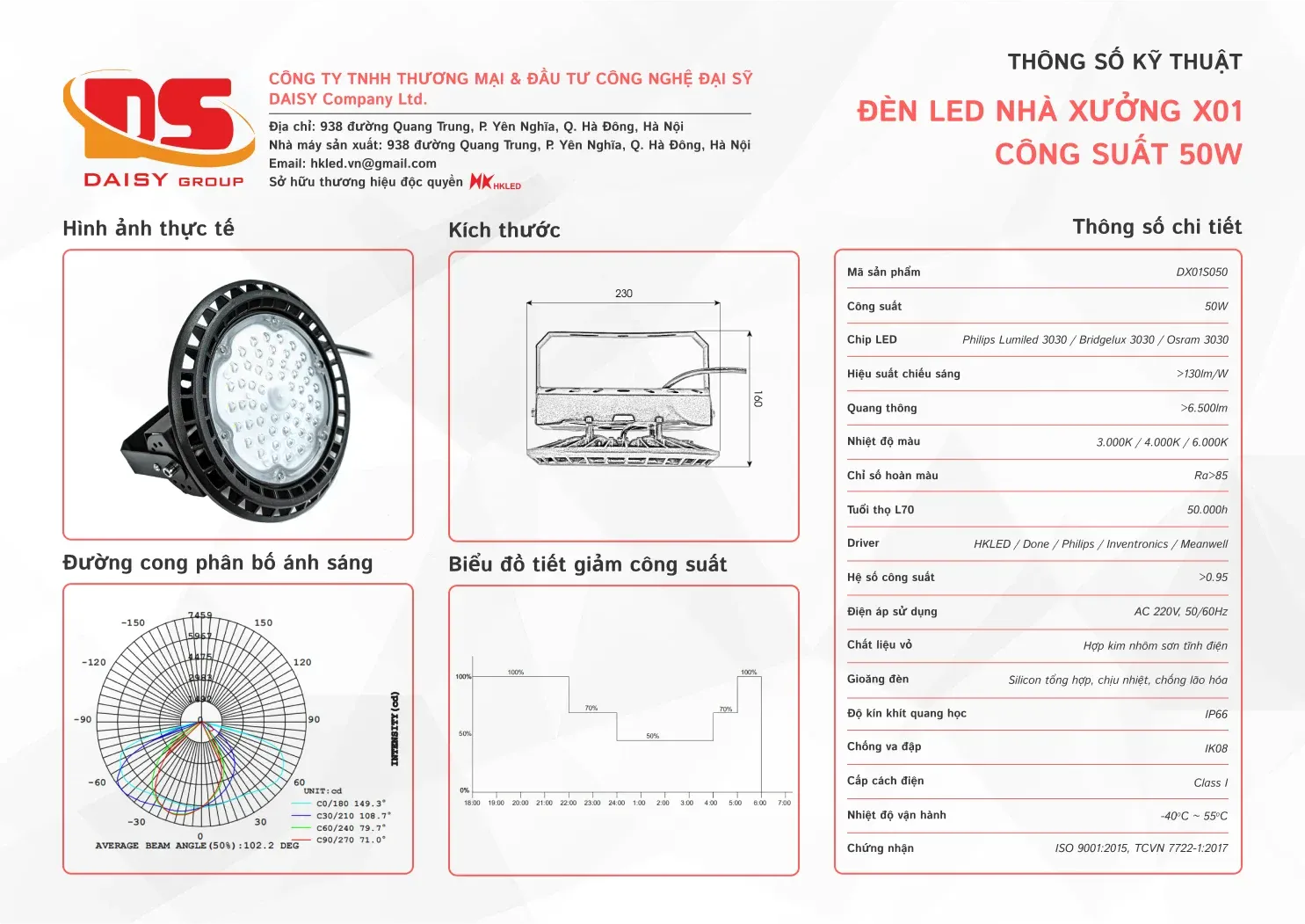 • Hiệu suất chiếu sáng: 130lm/W