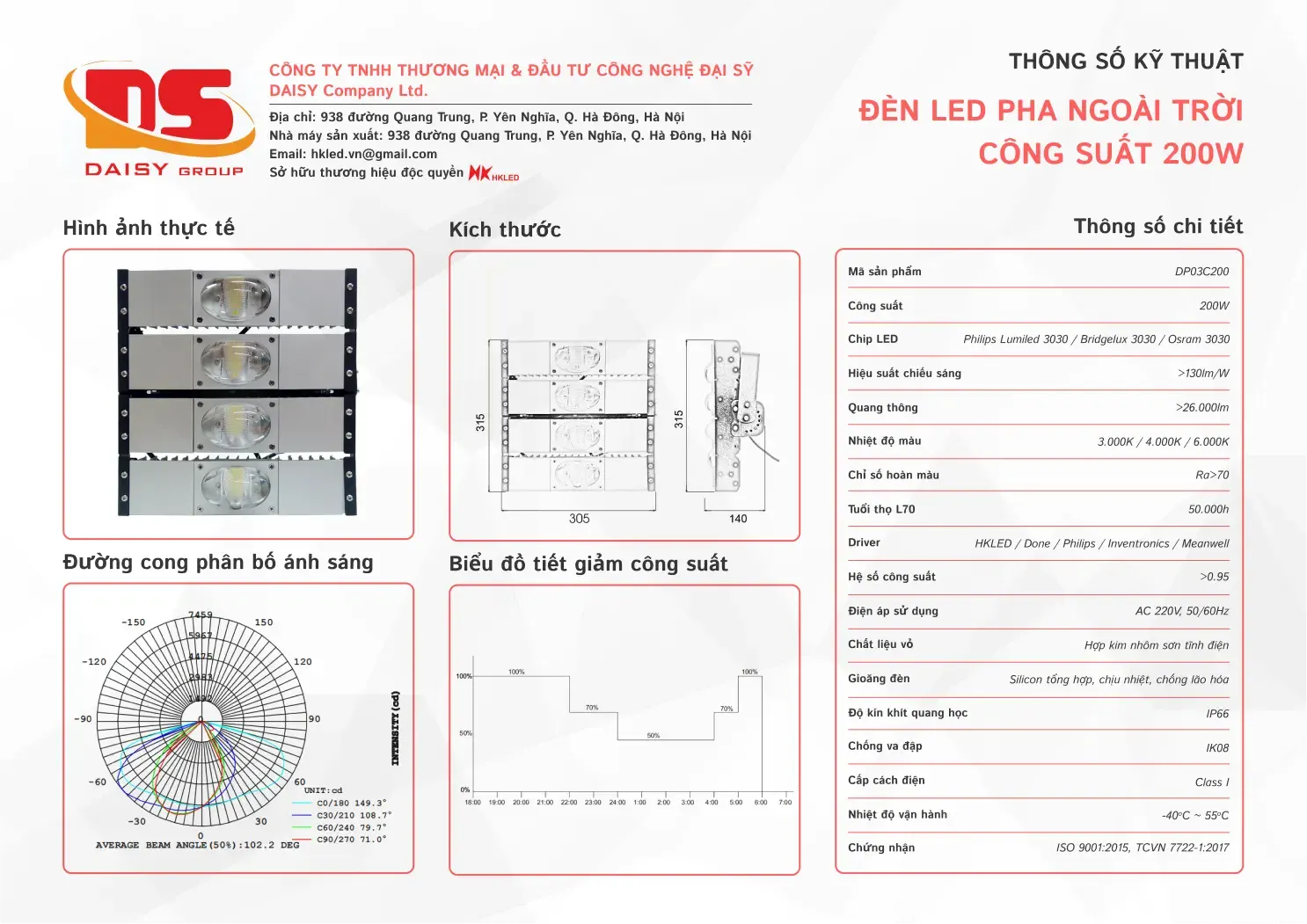• Hiệu suất chiếu sáng: 130lm/W