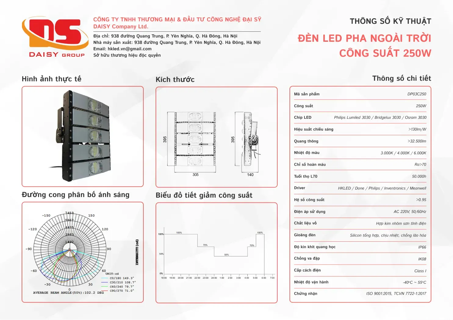 • Tuổi thọ L70: 50.000h