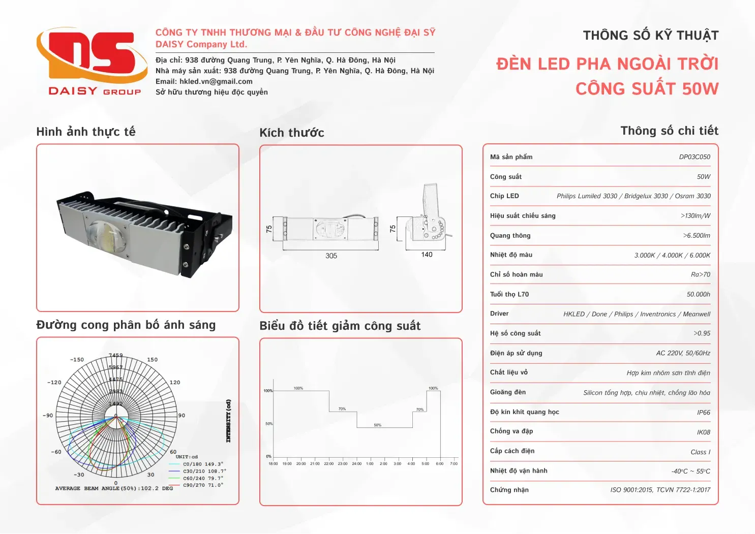 • Tuổi thọ L70: 50.000h