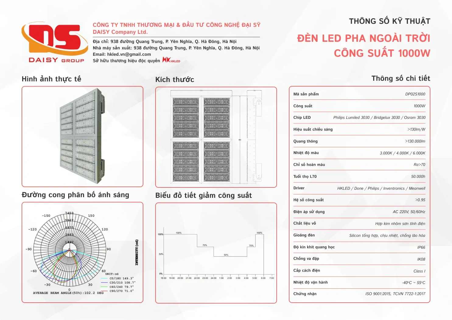 • Hiệu suất chiếu sáng: 130lm/W