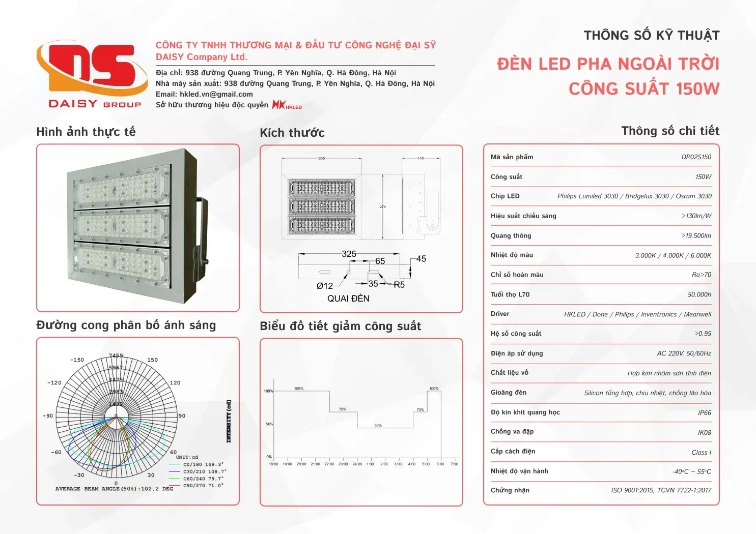 • Hiệu suất chiếu sáng: 130lm/W