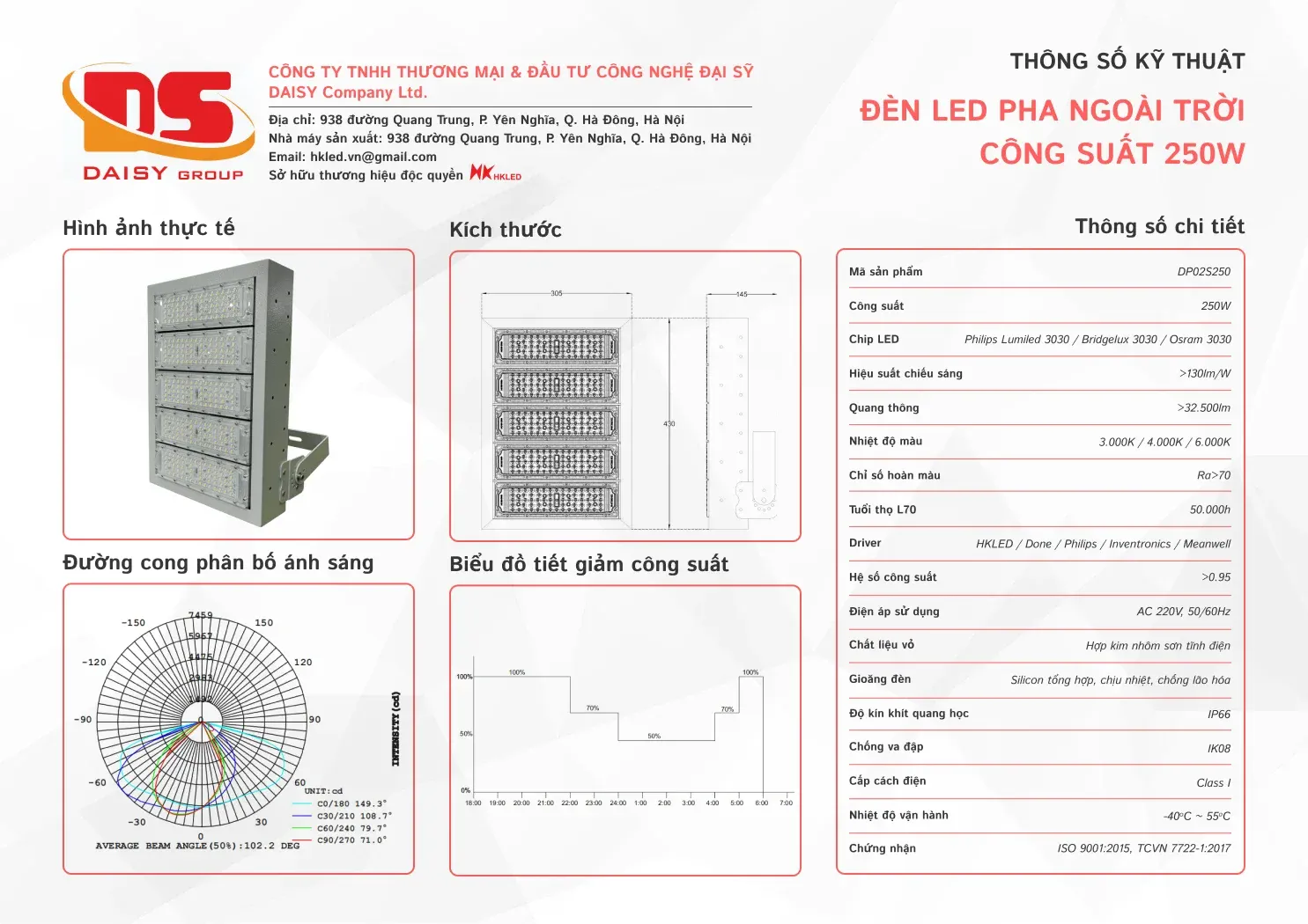 • Hiệu suất chiếu sáng: 130lm/W