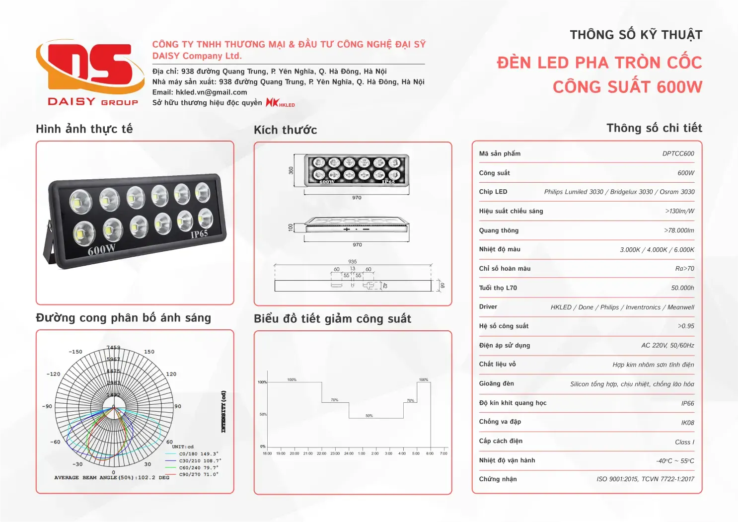 • Nhiệt độ màu: 3.000K / 4.000K / 6.000K